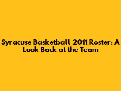 Hey sports fanatics! Ever feel a pang of nostalgia for the good ol' days of college basketball? Well, let's take a trip down memory lane and dive into the Syracuse Orange basketball roster from 2011. This was a team that had its fair share of ups and downs, but it was certainly a memorable one. We'll break down the key players, their contributions, and what made this team tick. So, grab your orange gear, and let's get started!