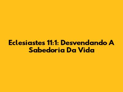 Eclesiastes 11:1: Desvendando A Sabedoria Da Vida