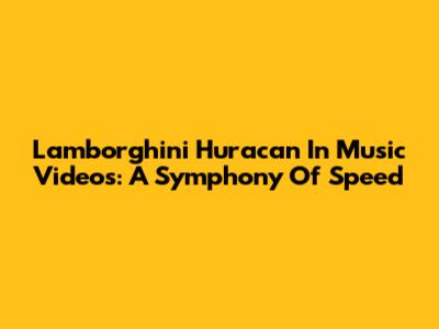 Lamborghini Huracan In Music Videos: A Symphony Of Speed