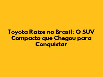 Fala, galera! Se você está de olho no mercado automotivo e procurando um SUV compacto que combine estilo, economia e tecnologia, prepare-se, porque o Toyota Raize pode ser exatamente o que você procura. Neste artigo, vamos mergulhar fundo em tudo que você precisa saber sobre o Raize, desde o seu lançamento no Brasil, passando por preço, fotos, especificações, consumo e muito mais. Então, se liga nas novidades e descubra por que esse carro está dando o que falar!