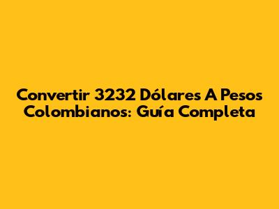 Convertir 3232 Dólares A Pesos Colombianos: Guía Completa