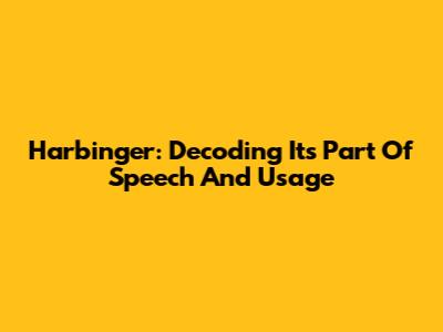 Harbinger: Decoding Its Part Of Speech And Usage