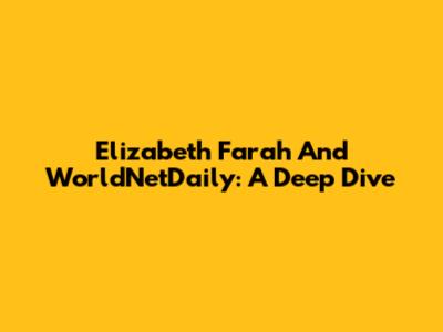 Elizabeth Farah And WorldNetDaily: A Deep Dive