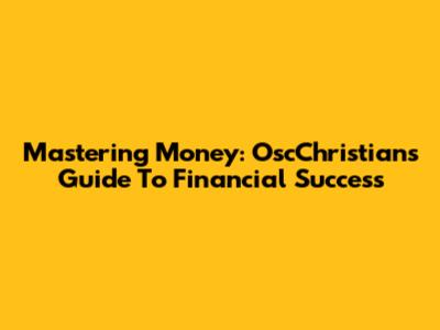 Mastering Money: OscChristian's Guide To Financial Success