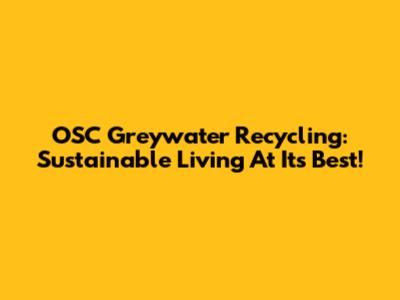 OSC Greywater Recycling: Sustainable Living At Its Best!