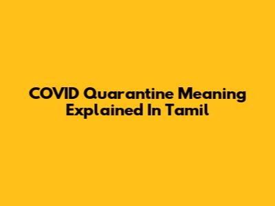 COVID Quarantine Meaning Explained In Tamil