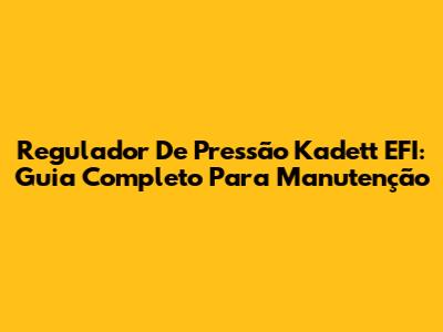 Regulador De Pressão Kadett EFI: Guia Completo Para Manutenção
